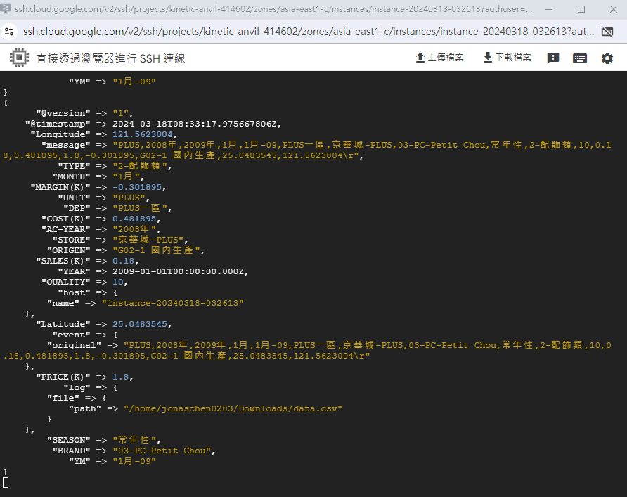 - 2.使用指令啟動:/usr/share/logstash/bin/logstash –f /etc/logstash/環境變數.conf